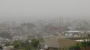 Şırnak’ın Silopi ilçesinde fırtına ve toz taşınımı görüş mesafesini düşürdü, hava kalitesi azaldı.