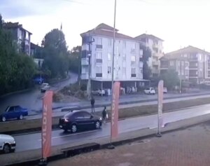 Yayaya yol vermek için durdu, arkadan gelen araç çarptı. Kaza anı kamerada kaydedildi.